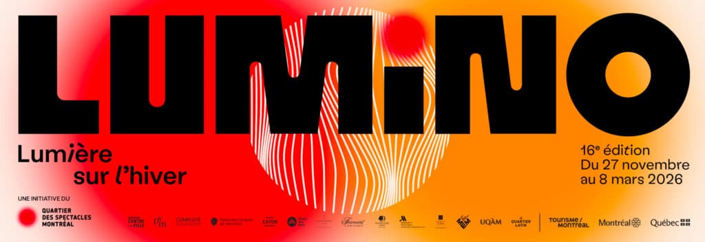 * LUMINO is a production of Partenariat du Quartier des spectacles, presented with the financial support of the City of Montréal, Tourisme Montréal and the Ministère des Affaires municipales et de l’Habitation du Québec, and with the collaboration of its co-presenters: Montréal centre-ville, Place Ville Marie (PVM), Complexe Desjardins, Palais des congrès de Montréal, Centre Eaton de Montréal, Place des Arts, HoneyRose Hotel Montreal, Fairmont The Queen Elizabeth, DoubleTree by Hilton Montreal, Montreal Marriott Château Champlain, Hyatt Place Montreal – Downtown, MEM – Centre des mémoires montréalaises, UQAM and SDC Quartier latin.